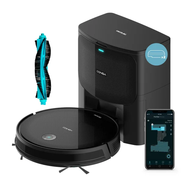 Conga 2299 Ultra Home X-Treme, el robot aspirador de Cecotec con base de autovaciado incluida con 3 litros de capacidad. Cuenta con tecnología giroscópica, limpieza ordenada de la totalidad de la superficie recorrida. Friega, aspira y barre a la vez. Con 6 modos de limpieza configurables desde tu smartphone gracias a su conectividad WiFi 2,4 GhZ y Bluetooth.